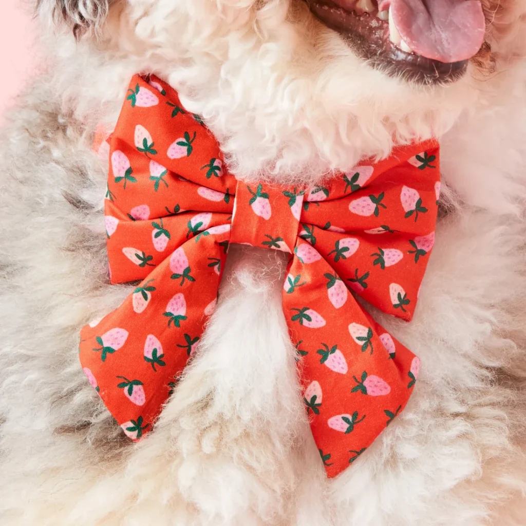 Sweeten up your pup’s look with this charming strawberry print that’s bursting with personality. Includes a removable matching bow for two looks in one (plus, save $6 on the set).