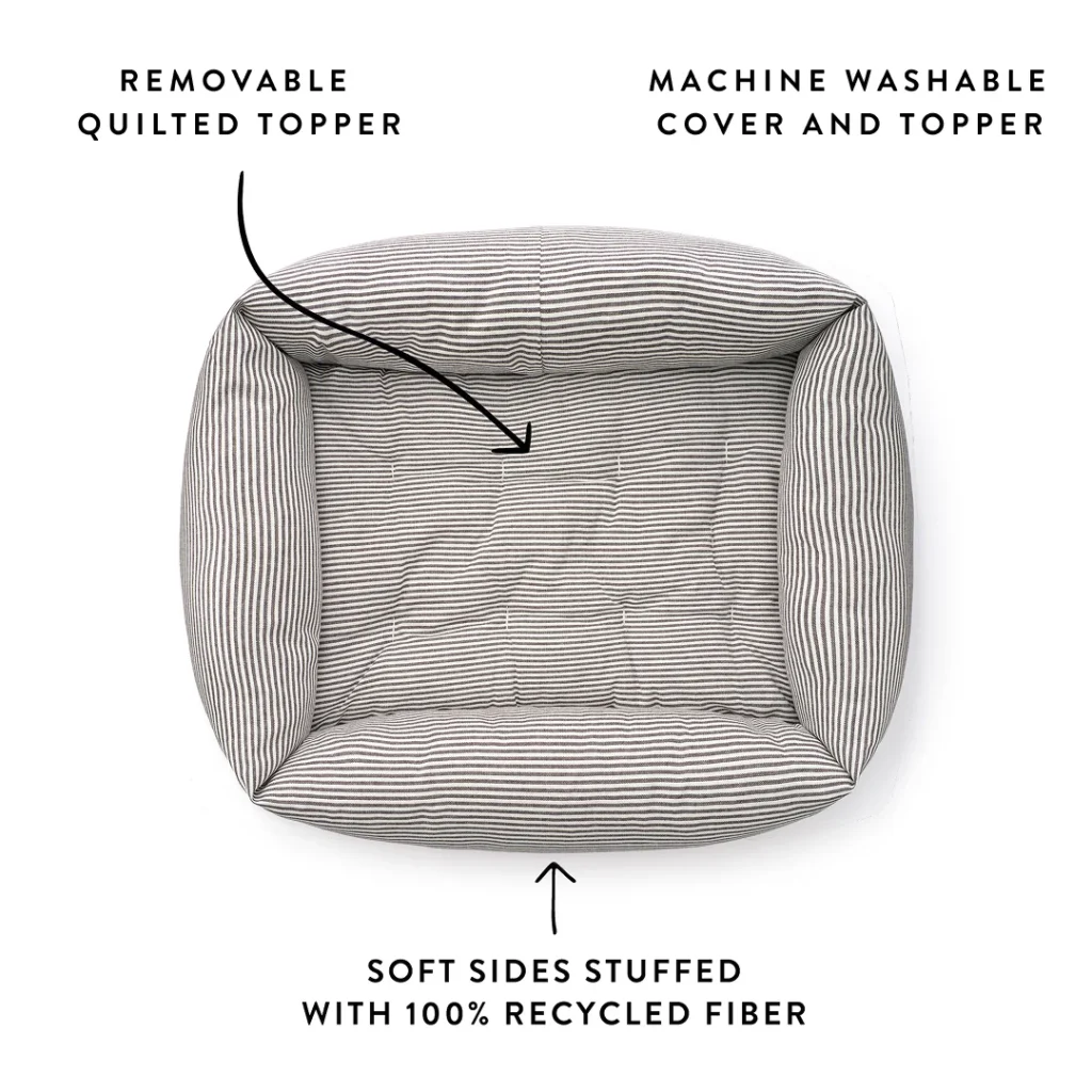 Your dog’s dreams have come true. Our new and improved bolster bed now includes premium foam padding, overstuffed pillowy sides and a quilted topper for extra comfort. Upholstered in The Foggy Dog’s beautiful woven cotton, this bed takes napping to a whole new level.