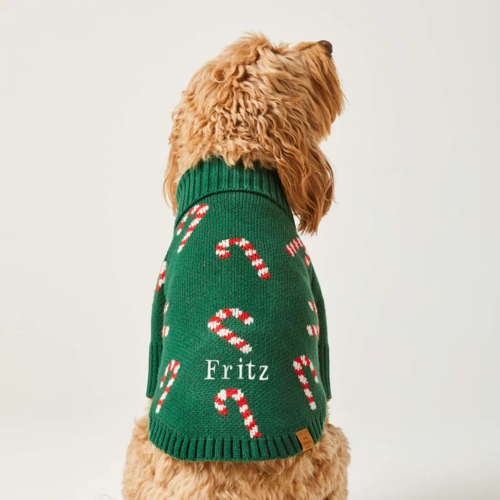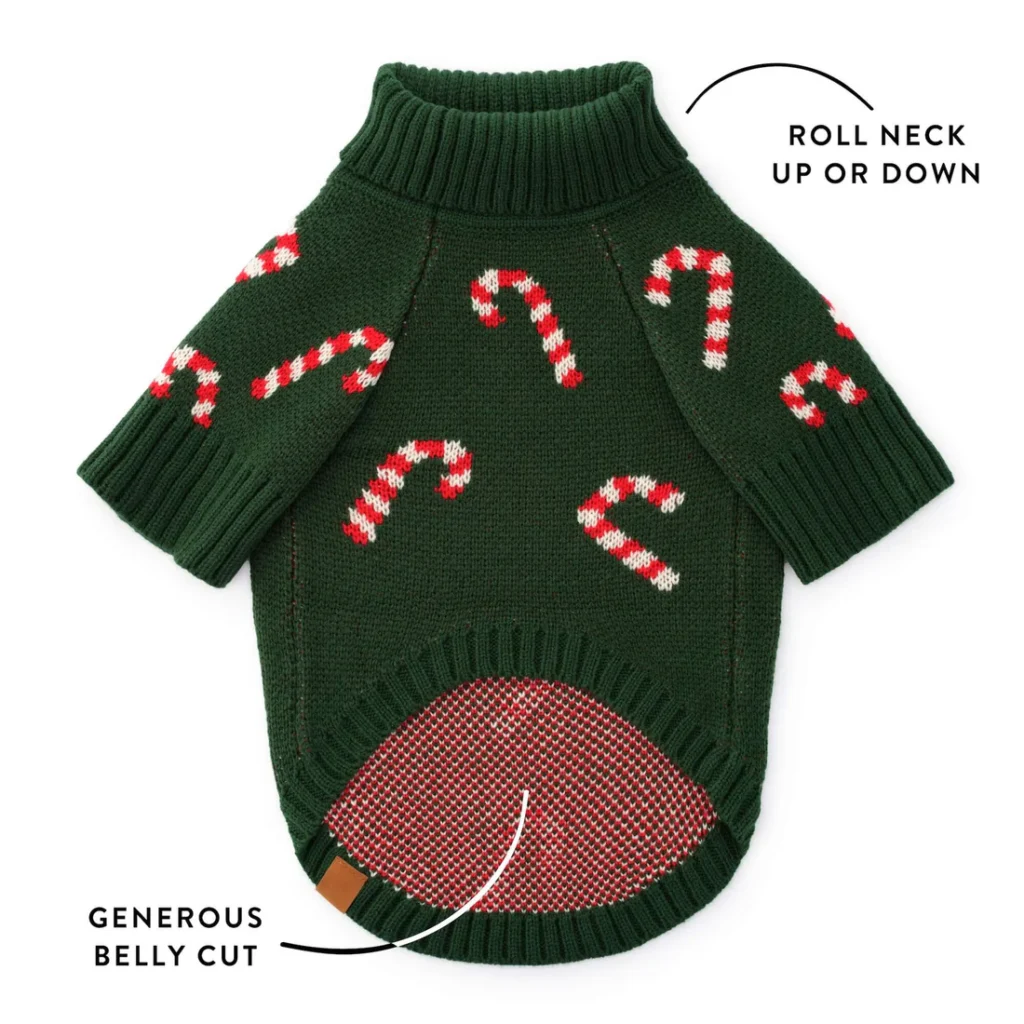 Santa Paws is coming to town! Make sure your pup is ready in this festive candy cane sweater.