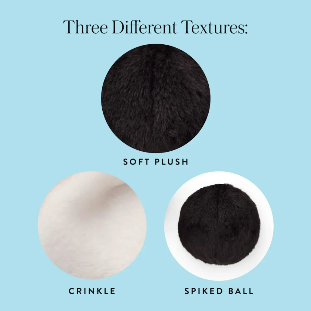 Save on this set of our most popular holiday 2-in-1 bounce toys. Each toy includes a removable bouncy ball encased in soft plush, plus crinkle and squeak elements.
