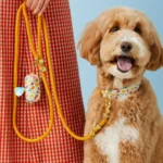 Your dog will turn heads at the dog park with this orange marine rope paired with luxe gold hardware.