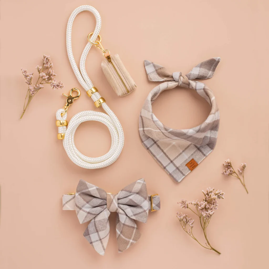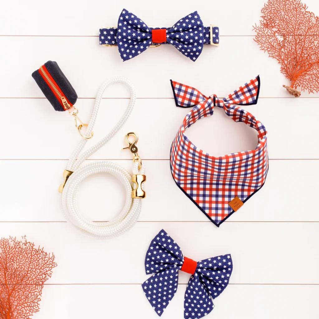 Your dog will turn heads at the dog park with this orange marine rope paired with luxe gold hardware.