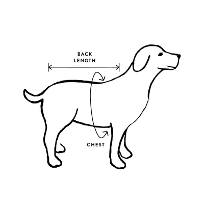 Measuring Tips: Use a soft tape measure, pulling the tape snug but not tight. The chest girth is the most important measurement and should be taken around the widest part of your dog’s chest, from the top of the shoulders to the bottom of the ribcage. For the back length, measure from the bottom of your dog’s neck to the base of his tail.